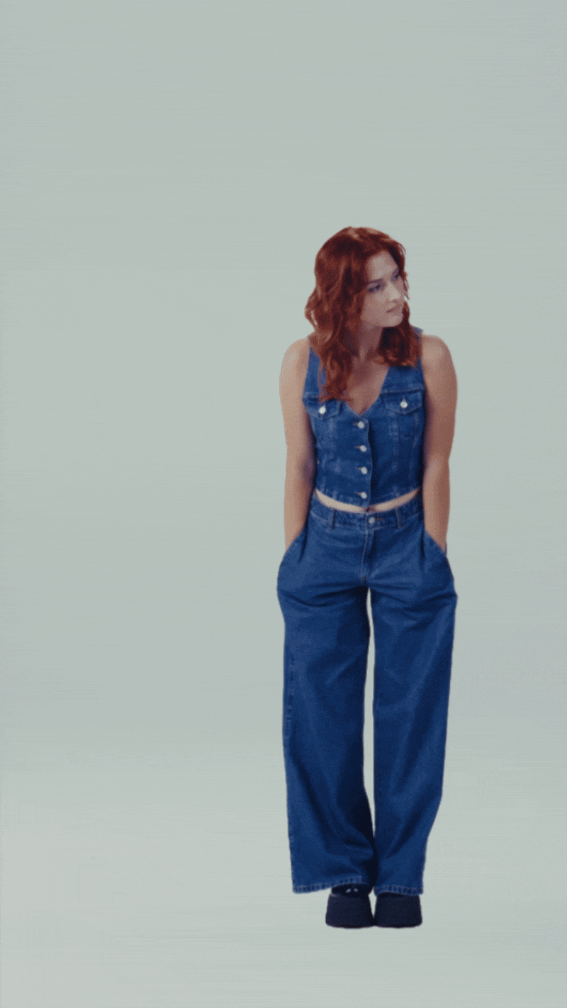 En parallèle, j’ai réalisé la direction artistique de la cover du single, montrant Paola submergée sous une accumulation de denim bleu, une métaphore de la pression sociale. La palette froide met en valeur la couleur rousse de ses cheveux, futur élément fort de son identité visuelle.
